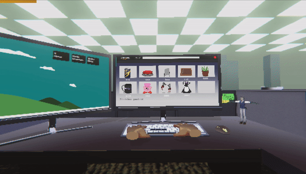 Play as a middle aged office worker, Cole Cube a middle-aged office worker at BS Solutions. It is not a business solutions company, but, rather, it acts as a middleman, connecting other businesses with business solutions companies. It is an utterly pointless company that doesn’t produce anything and is the epitome of excessive bureaucracy. While working, you can browse through the newest e-commerce platform 'Bamazon' to buy products and power ups instantly, respond to work related mails through the latest application 'b-mail', get a new high-score on the new game of the year 'BOSU', all while avoiding the boss! But don't forget to keep your viewers happy because work doesn't pay!